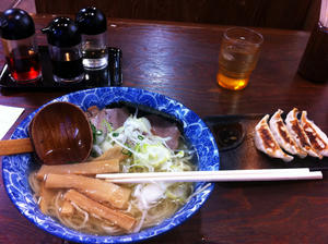 七右衛門に入って、鳥骨塩がなかったので塩あっさりの大盛りを頼みました。