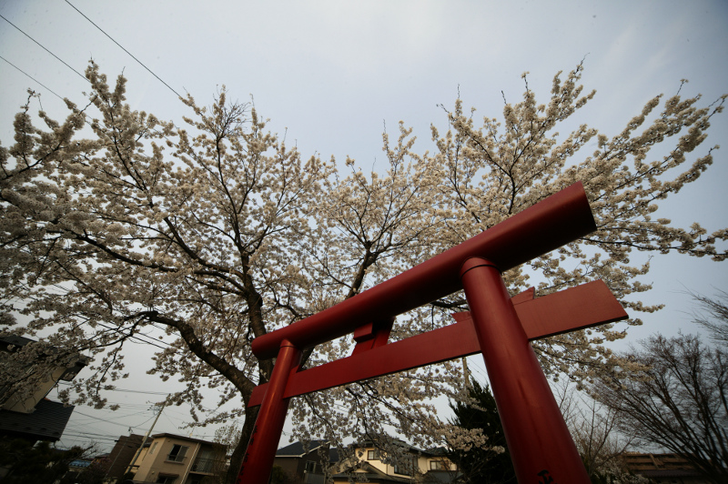 鳥居のある神社のそばにも桜の木がありました。