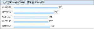 コレステロール CHOL 110~250 mg/dL 227